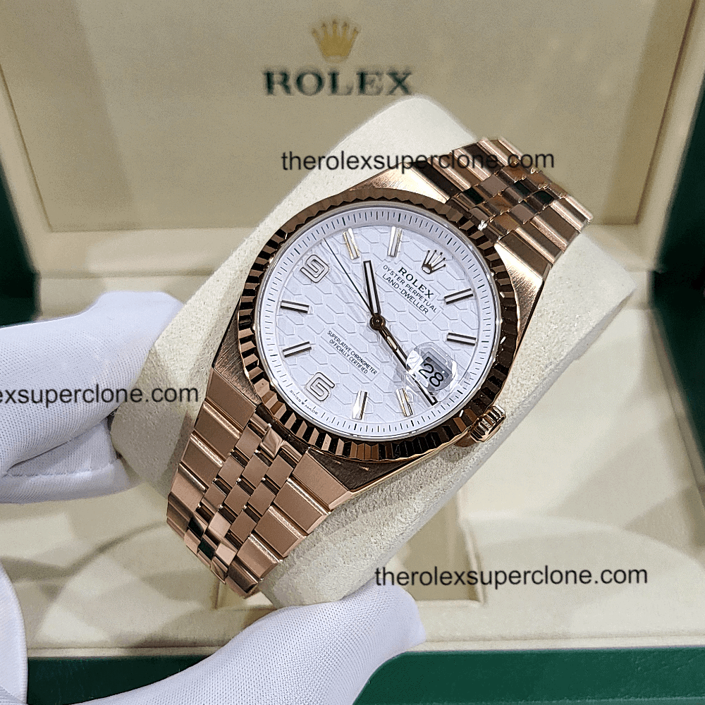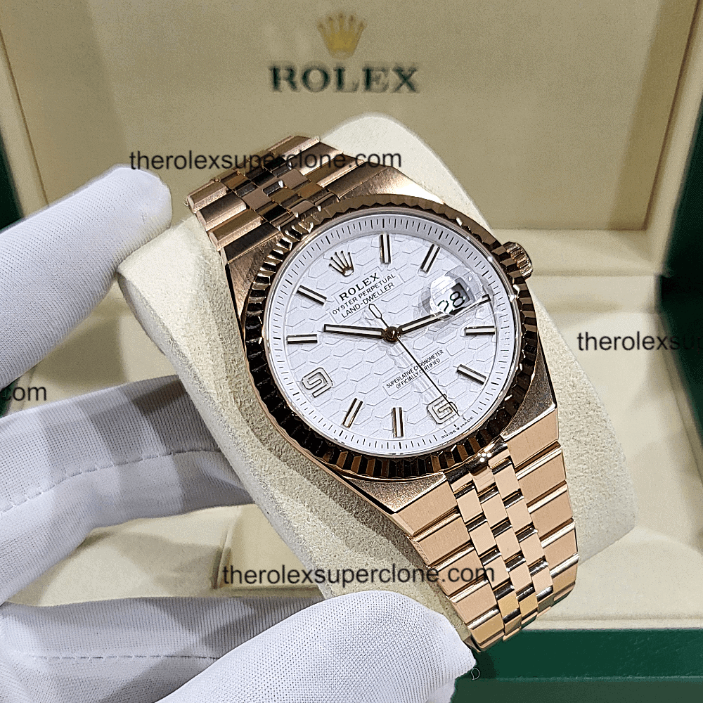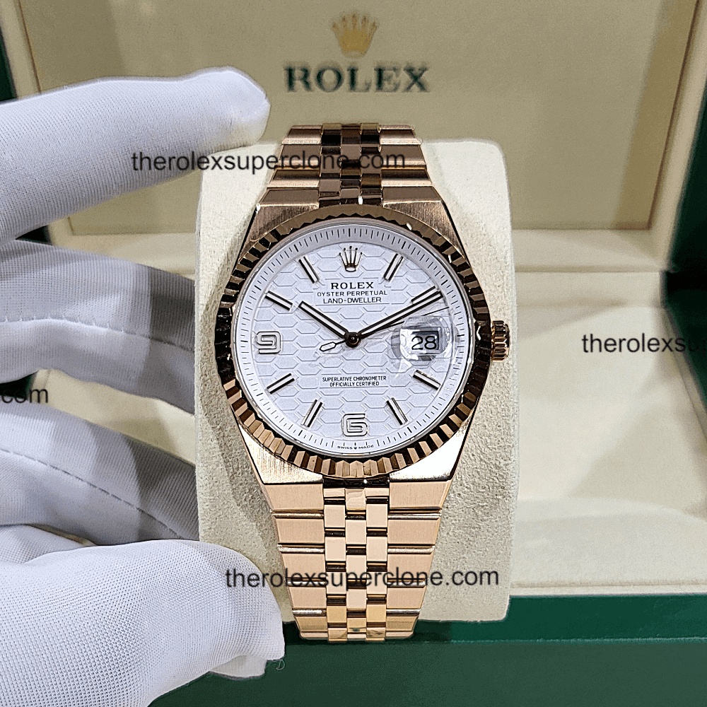 Rolex Land-Dweller 40mm 1:1 Super Clone Everose Gold White Honeycomb Motif Dial 7135 Swiss Movement Replica Watch Ref-127335