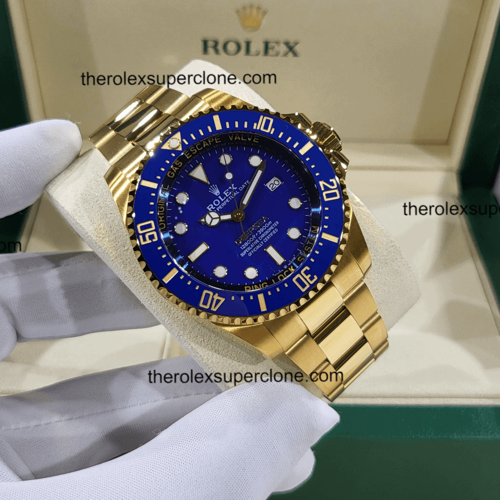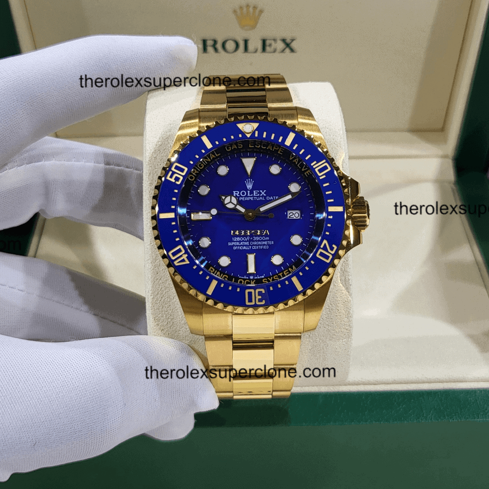 Rolex Deepsea 1:1 Super Clone Oyster Yellow Gold Blue Dial 3235 Swiss Movement Replica Watch Ref-136668LB